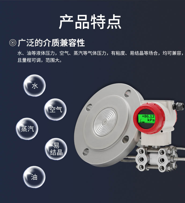差压变送器采用了高性能 SMI 硅压阻式压力芯片为敏感核心......